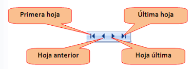 Las etiquetas sirven para indicar el contenido de la hoja y para moverse entre las hojas, también se pueden utilizar Ctrl + Av pg (Page Up) para avanzar a la página siguiente o Ctrl + Re pg (Page Down) para retroceder a la página anterior.